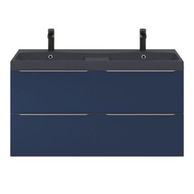 Meuble vasque suspendu bleu nuit mat l.120 cm Imandra + plan double vasque noir résine Mila, GoodHome