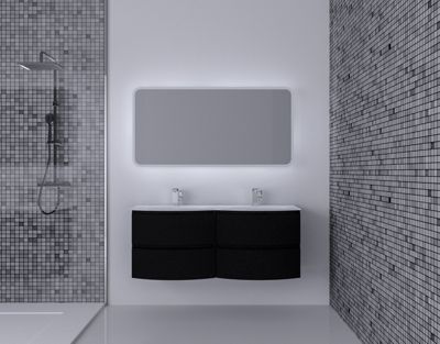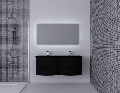 Ensemble Vague L.138 cm meuble sous vasque à suspendre noir mat + plan de toilette double