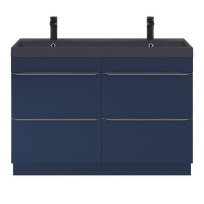 Meuble vasque à poser bleu nuit mat l.120 cm Imandra + plan double vasque noir résine, GoodHome