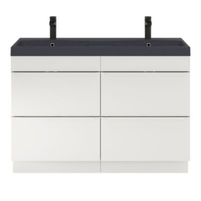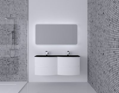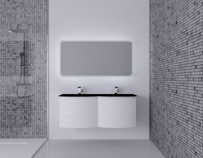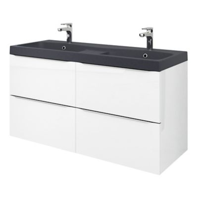 Meuble vasque suspendu blanc brillant l.120 cm Imandra + plan double vasque noir résine Mila, GoodHome