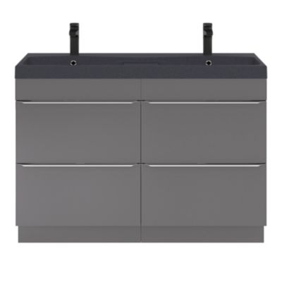 Meuble vasque à poser gris brillant l.120 cm Imandra + plan double vasque noir résine Mila, GoodHome