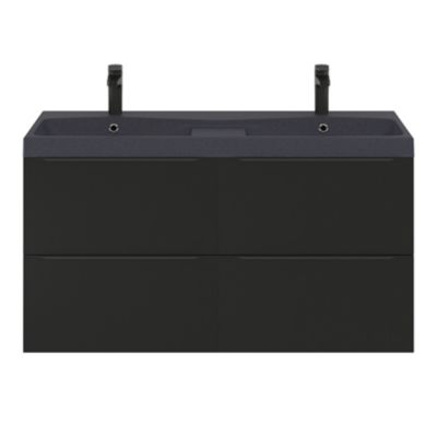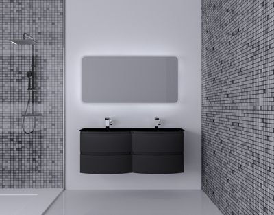Meuble vasque suspendu noir mat l.120 cm Imandra + plan double vasque noir résine Mila, GoodHome