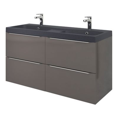 Meuble vasque suspendu gris brillant l.120 cm Imandra + plan double vasque noir résine Mila, GoodHome