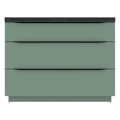 Meuble vasque à poser vert sauge mat l.120 cm + plan double vasque noir en résine, Pamili