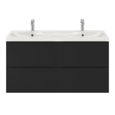 Meuble vasque suspendu noir mat l.120 cm Imandra + plan double vasque blanc résine Mila, GoodHome