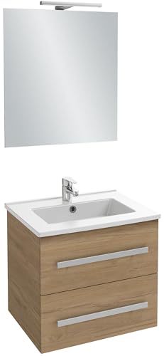 Jacob Delafon - Meuble OLA UP 60cm, Plan Vasque & Miroir 60cm + 1 Spot LED - Pack tout-en-1 - Grande Capacité - Chêne Colorado - 610x540x465mm - EBP2322-ECD