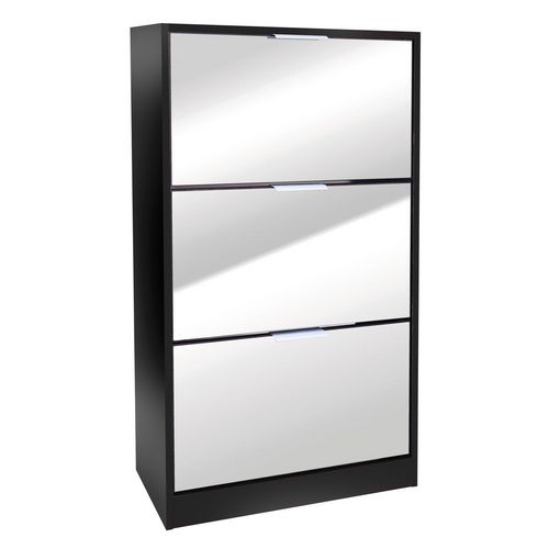 DIVERS Meuble à chaussure 3 tiroirs en Mélaminé avec Miroir - Noir Taille unique Noir