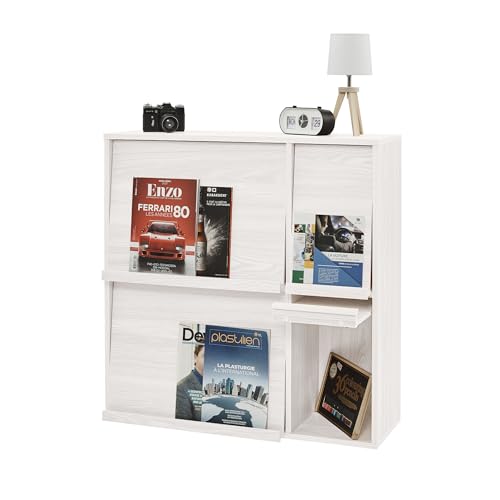 Iris Ohyama, Meuble, Étagère, Bibliothèque de Rangement, avec 4 Portes rabattables, Design, Polyvalent, Bureau, Chambre, Salon, Salle à Manger - Flap Rack FR-F4 - Chêne Blanc