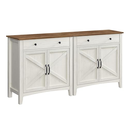 VASAGLE Buffet, Lot de 2, Meuble de Rangement avec Tiroir, Meuble de Cuisine, Portes, Étagère Réglable, Style Campagne, Salon, Salle à Manger, 40 x 80 x 80 cm, Blanc Rustique et Marron Miel BBK791W01