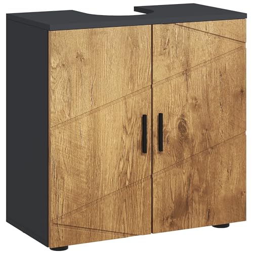 kleankin Meuble sous lavabo Meuble de Salle de Bain 2 Portes avec étagère réglable Armoire de Rangement pour Vasque 60 x 30 x 60 cm Gris Anthracite et Aspect Bois