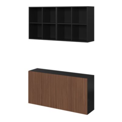 Meuble TV effet noyer et noir 4 portes avec étagère suspendue GoodHome Atomia H. 150 x L. 150 x P. 35 cm