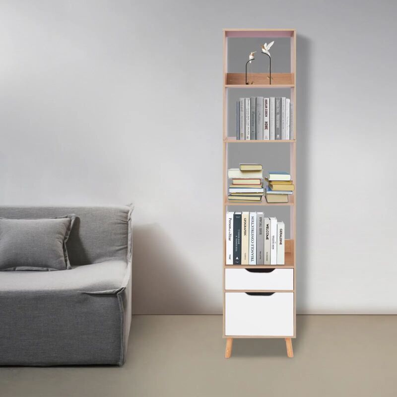 Étagère à tiroirs, Bibliothèque sur pied, meuble de rangement de 180 cm de haut, étagère de rangement sur pied, pour salon, bureau ou cuisine,