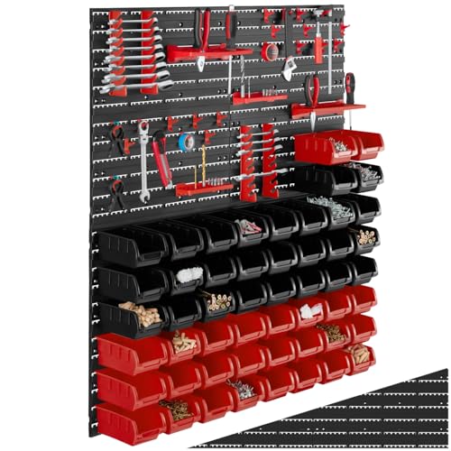 TecTake® Étagère Murale modulable 56 Boîtes de Rangement empilables & Crochets Meuble de Rangement Rangement Atelier Garage Rangement Mural de visserie & Clous Organisation du Garage