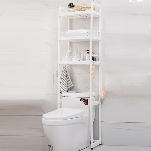 Meuble wc Rangement Haut, Avec 4 Autocollants Fixes, Pieds Réglables Antidérapants, Forte Capacité de Charge, Étagère de Rangement Pour Toilettes en Plastique Multicouche, Blanc, Rose ( Color : White