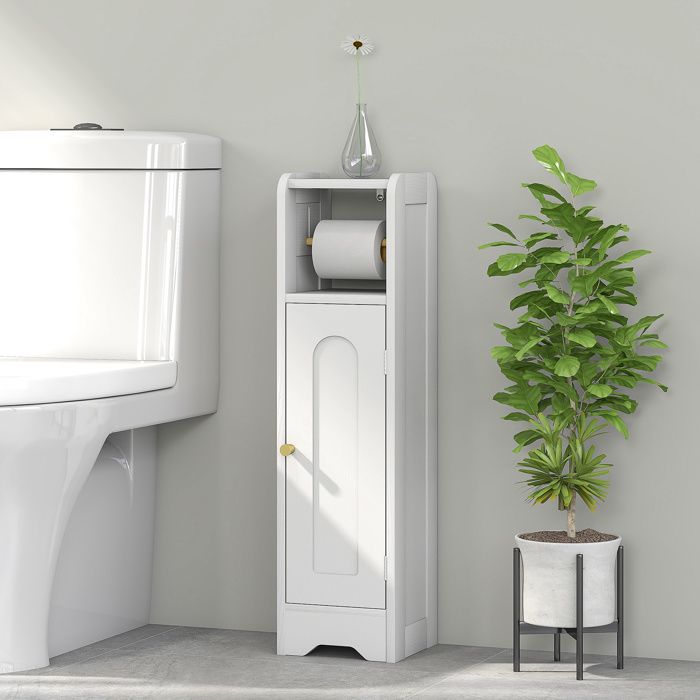 HOMCOM Meuble salle de bain meuble toilettes WC rangement étroit avec étagère réglable gain de place pour petits espaces blanc