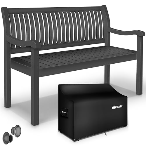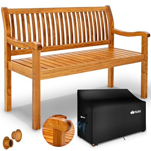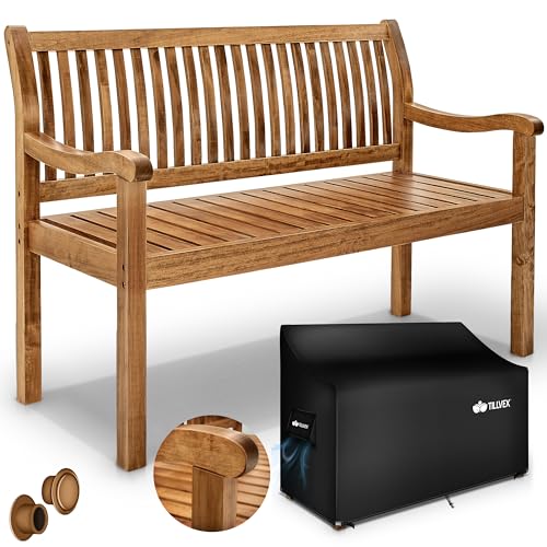 tillvex Banc de Jardin 150 cm en Bois avec Couverture | Solide Banquette d'Extérieur 3-4 Places | Jusqu'à 320 kg de Charge | Meuble de Terrasse, Parc, Patio, Balcon