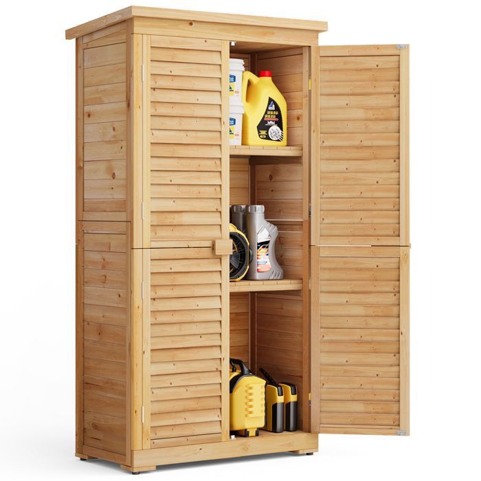 Armoire de Jarin - Bealife - Meuble Rangement Extérieur Bois - 3 Etagères - 2 Portes - Toit Pente - 76x42x1605 cm - Coffre Jaune