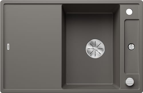 BLANCO AXIA III 5 S SILGRANIT Gris volcanique, Type de montage : encastrement par le haut, réversible, avec planche à découper en bois, meuble bas de 50 cm, planche à découper coulissante, plateau