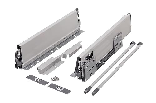 cyclingcolors 2x tiroir complet avec coulisse + côté + support de façade + support de dos + cache + vis, bricolage, DIY, meuble, cuisine, hauteur 204mm, longueur 500mm, gris, reling carré
