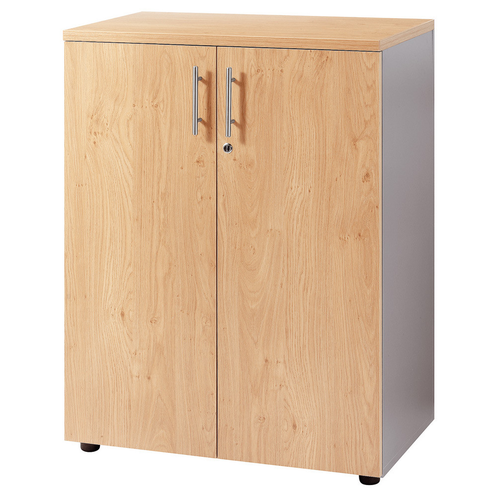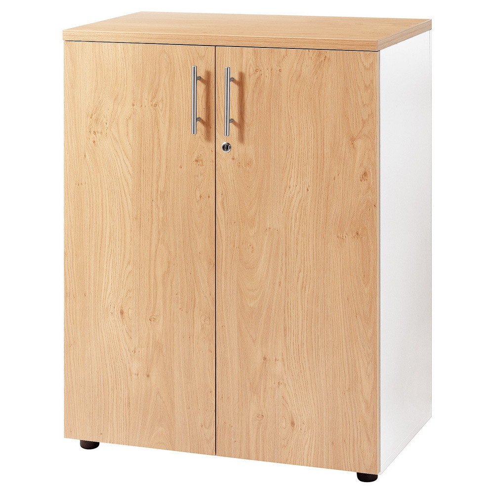 Meuble mi-hauteur Actual avec portes - H.102 x L.80 x P.47 cm - Corps Blanc - Portes Chêne