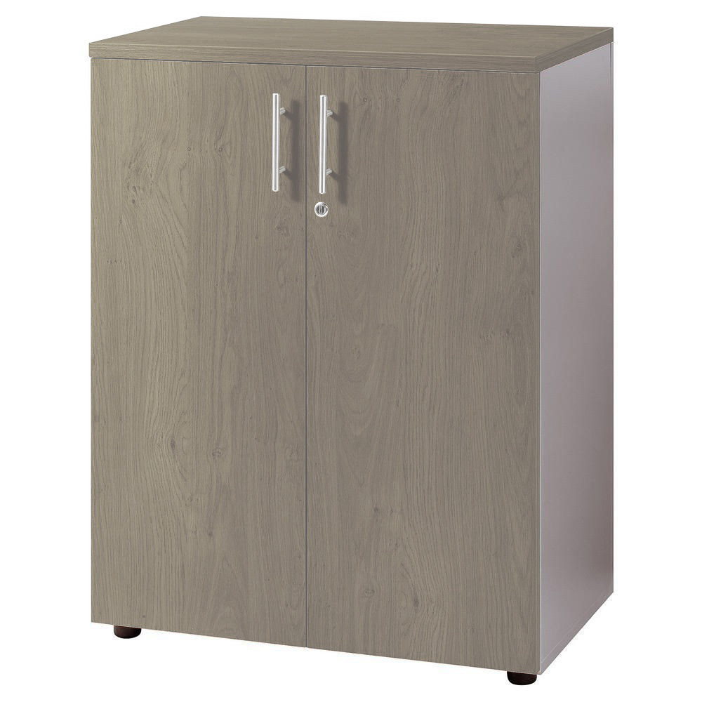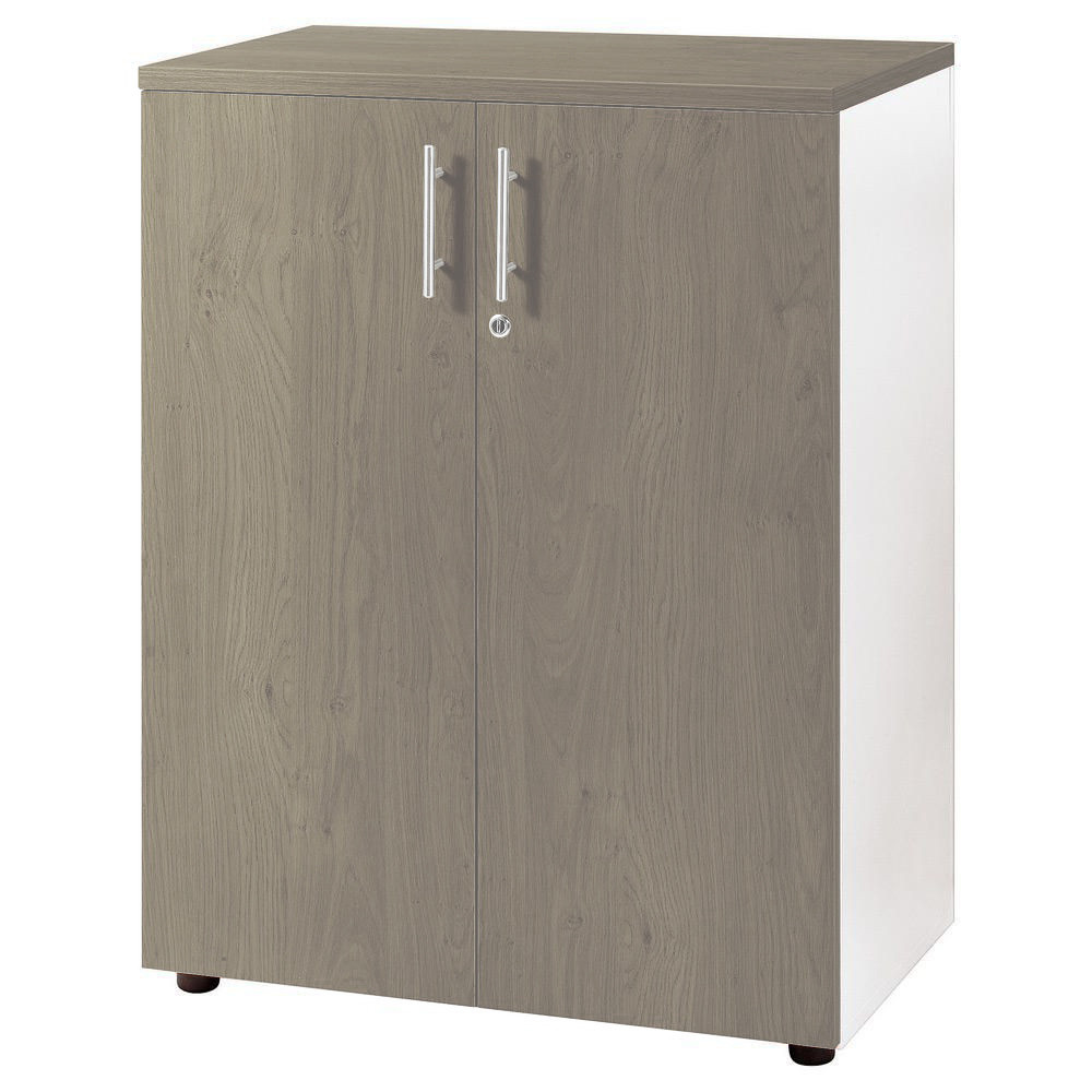 Meuble mi-hauteur Actual avec portes - H.102 x L.80 x P.47 cm - Corps Blanc - Portes Chêne grisé