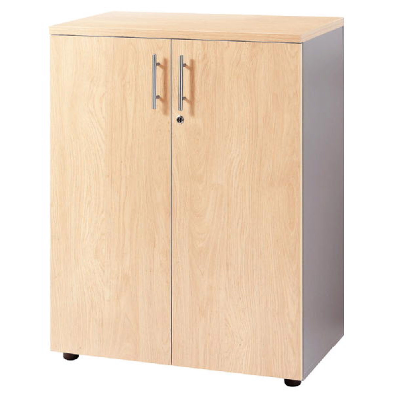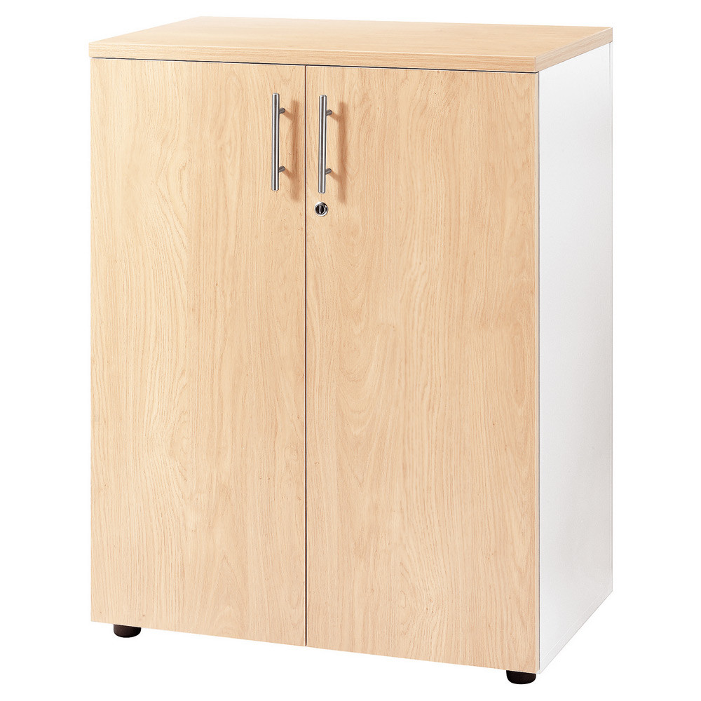 Meuble mi-hauteur Actual avec portes - H.102 x L.80 x P.47 cm - Corps Blanc - Portes Hêtre