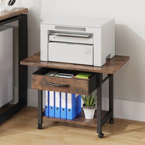 MAHANCRIS Support d’Imprimante avec Tiroir de Rangement, Étagère de Rangement pour Bureau, pour télétravail, Meuble Imprimante avec Rangement, pour Fax, Imprimante 3D, Scanner, Marron APTHR3001