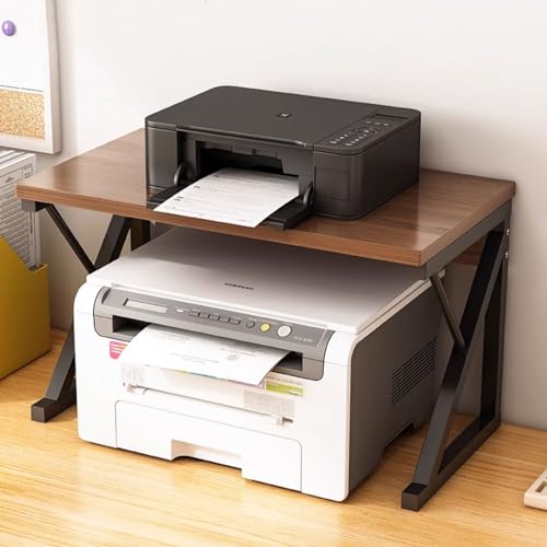 Petit Support D'Imprimante À 2 Niveaux 54 * 33 * 35cm sur Bureau Meuble for Imprimante Stable Et Forte en Bois Métal Étagère De Stockage Table De Travail for Bureau Maison Et École