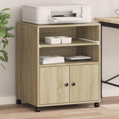 Tidyard Support d'imprimante avec roulettes chêne Sonoma 60x48x74 cm, Étagère de Rangement Organisateur de Stockage Meuble Imprimante avec Compartiments pour Maison Bureau