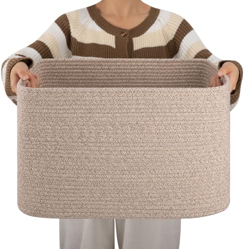 OIAHOMY Grand panier de rangement de couverture tissé avec poignée, panier en corde de coton pour organiser 55,9 x 43,2 x 30,5 cm, panier à couvertures, salon, panier à jouets pour chambre d'enfant