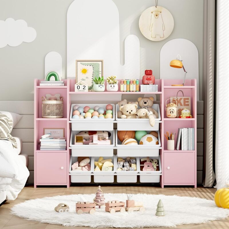 Getone Meuble de Rangement Jouets Enfant Armoire Chambre Enfant Bibliothèque Enfant avec 8 Étagères 6 Boîtes Amovibles et 4 etageres de livres Organisateur de Jouets Salle de Jeu pour Chambre d’Enfant
