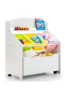 Sobuy meuble rangement enfant pour jouets et livres, organisateur de jouets, étagère à livres pour chambre d'enfant, bibliothèque enfant, 3 compartiments et 3 boîtes plastique, 70x30x58 cm, kmb107-g