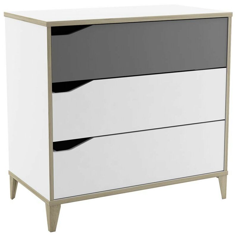 Miroytengo - Commode 3 tiroirs Genius blanche et grise pour chambre d'enfant, meuble pour jeune, 76x78x43 cm