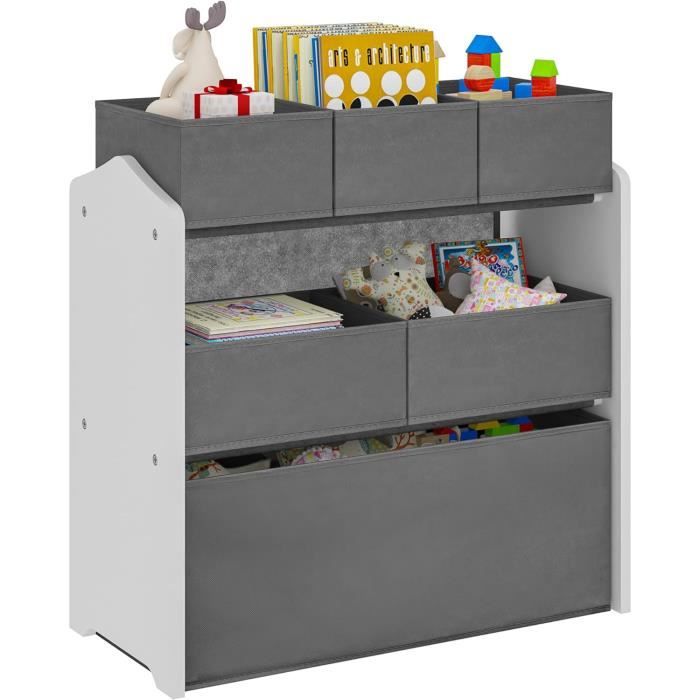 Meuble de Rangement pour Chambre d’Enfant avec 6 Boîtes Amovibles Étagère Blanche avec Coffres à Jouets Gris 63x30x60cm 0023ETSJ