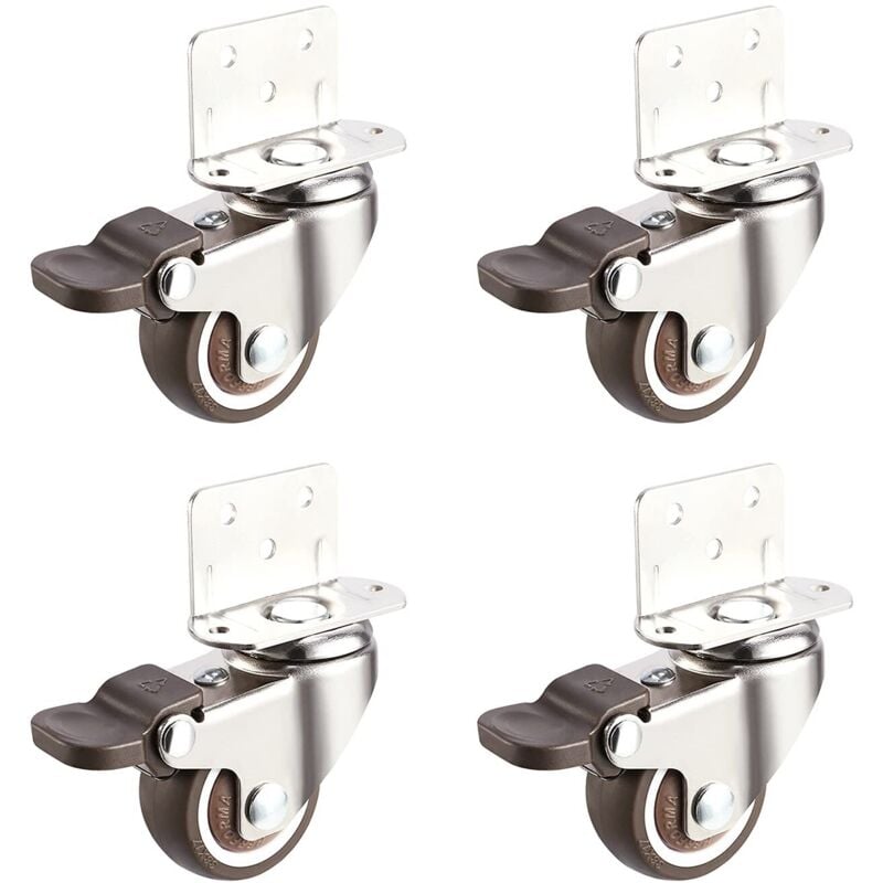 Lot de 4 roulettes de meuble TPE avec frein, roulettes pivotantes avec platine de fixation en L, roulettes en caoutchouc pour chambre d'enfant,