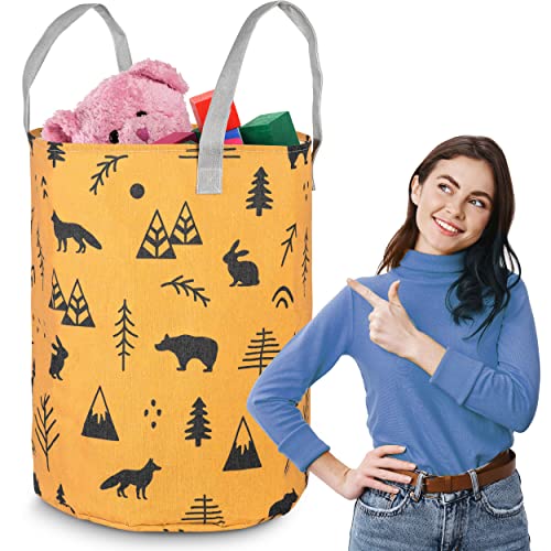 NUKIDO Panier à jouets autoportant pour chambre d'enfant Grand design enchanteur spacieux Matériau durable Facile à nettoyer Oreilles solides 100% coton 60x35cm Orange