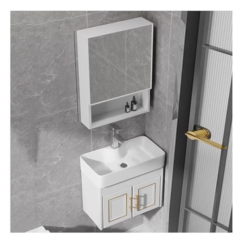 Aioneer Meuble-Lavabo d'angle Suspendu avec Meuble Et Robinet, Solution Gain De Place pour Les Petites Salles De Bains-White-a-60x36x48 cm
