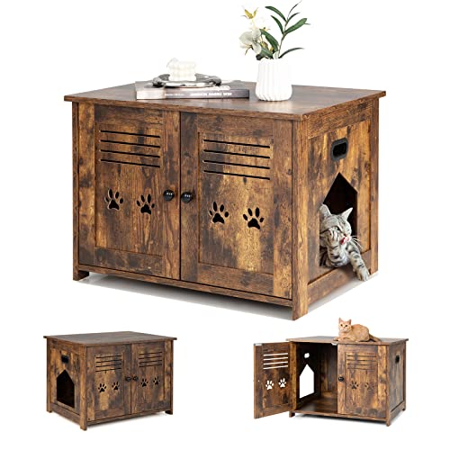 Costway - Meuble Litiere Chat avec Portes à Persiennes et 2 poignées découpées Style Industriel, Maison de Toilette Chat Bonne respirabilité, 70 x 52