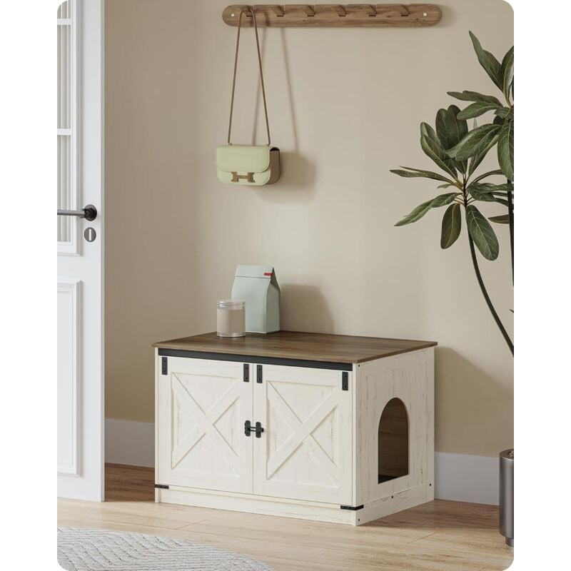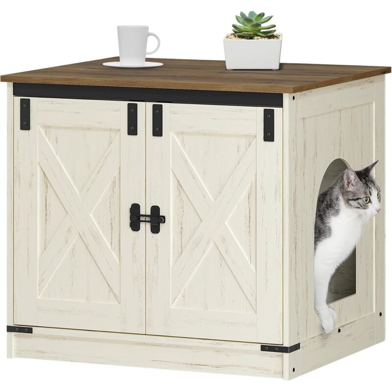 Liferun - Meuble Litiere Chat,Armoire pour Chat,Maison de Toilette pour Chat,Grotte de Chat,Charge 50 kg,98x91x50CM, Beige