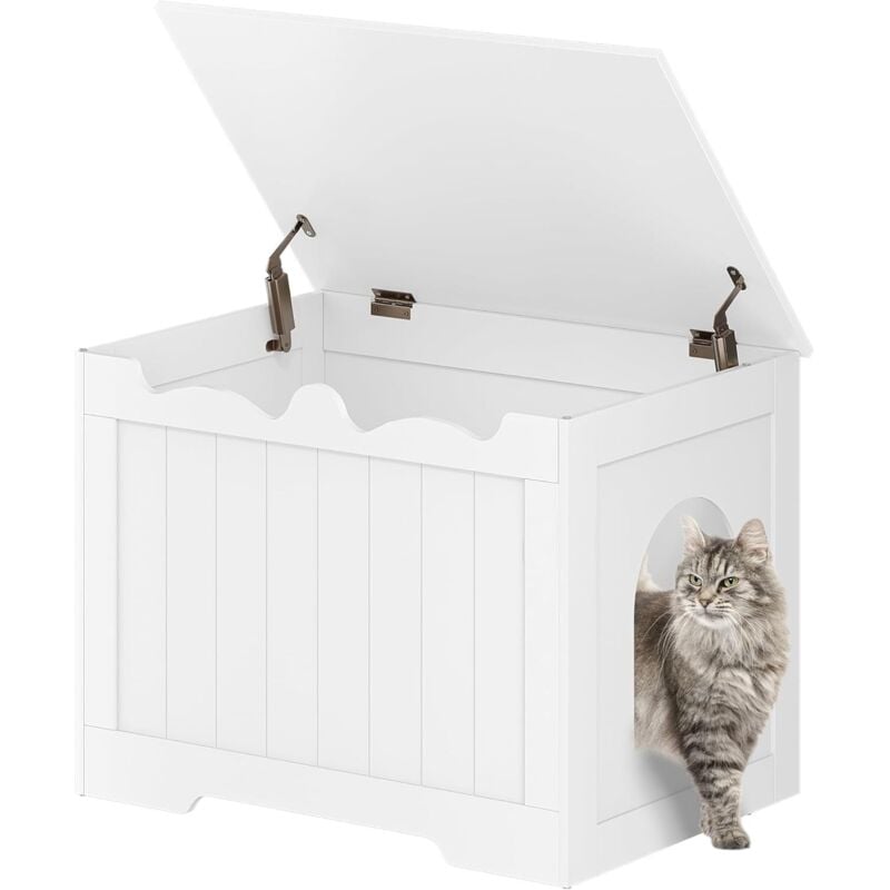 Hzuaneri Maison de Toilette Chat, Meuble Litiere Chat, Meuble D'armoire Caché à Ouverture Supérieure, Maison pour Chats D'intérieur, Boîte de Rangement, 70 x 50 x 53 cm, pour Chambres, Blanc CB84803X