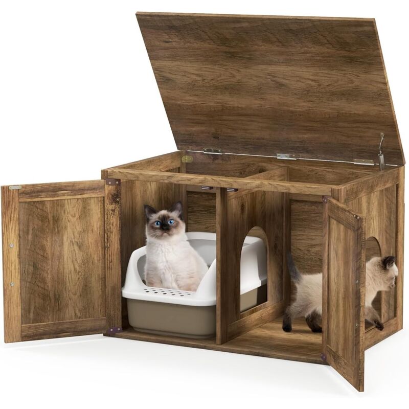 Liferun - Armoire de Meuble Litiere Chat, Maison de toilette pour chat,Armoire Multifonction pour Animaux,80 x 50 x 59 cm, Marron