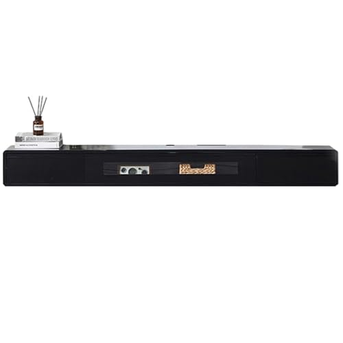 RQLSSSLMXJ Meuble TV Suspendu en Bois Massif, Meuble TV Mural Minimaliste avec tiroir et Porte abattante, Console multimédia (Noir et Blanc, 220 x 20 x 24 cm)