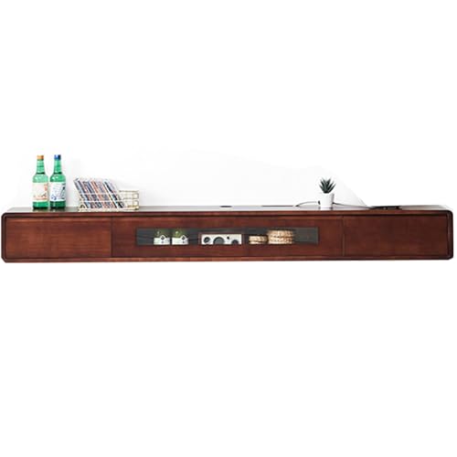 RQLSSSLMXJ Meuble TV Suspendu en Bois Massif, Meuble TV Mural Minimaliste avec tiroir et Porte abattante, Console multimédia (Noyer, 240 x 20 x 24 cm)