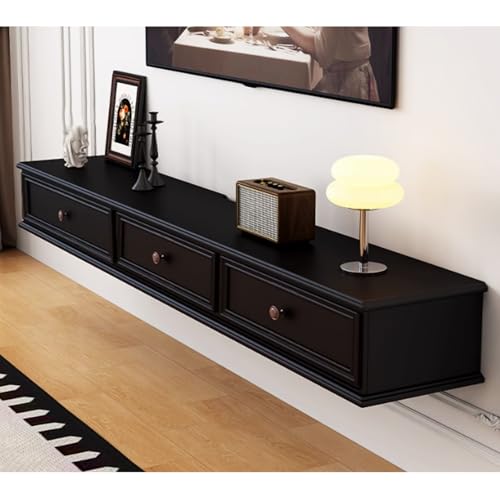 RQLSSSLMXJ Meuble TV Mural Suspendu Noir avec tiroirs, Console multimédia, Gestion des câbles, Meuble TV en Bois Massif pour Rangement sous Le téléviseur (30 cm, 140 cm) - Design Moderne et é