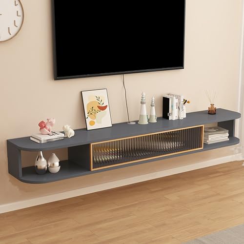 RQLSSSLMXJ Meuble TV Mural Suspendu, Centre multimédia en Bois de 140 cm, élégant Meuble TV pour Salon, Console TV Suspendue Moderne Grise - Design Gain de Place