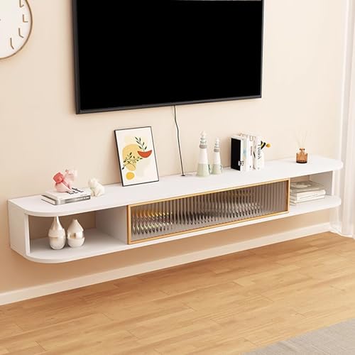 RQLSSSLMXJ Meuble TV Mural Suspendu, Centre multimédia en Bois Blanc pour Salon, Meuble TV de 160 cm, Console Suspendue élégante pour la décoration intérieure