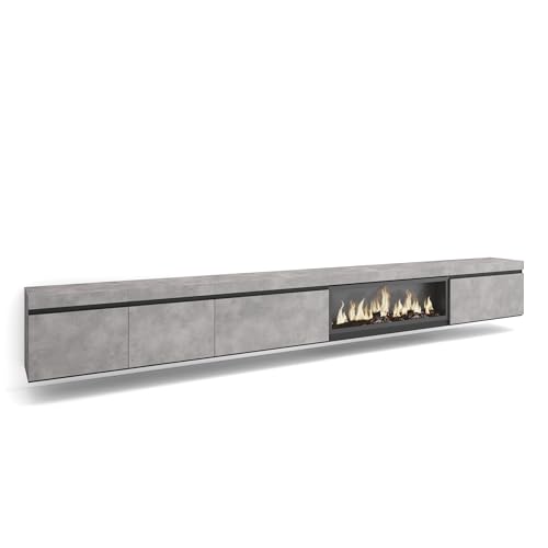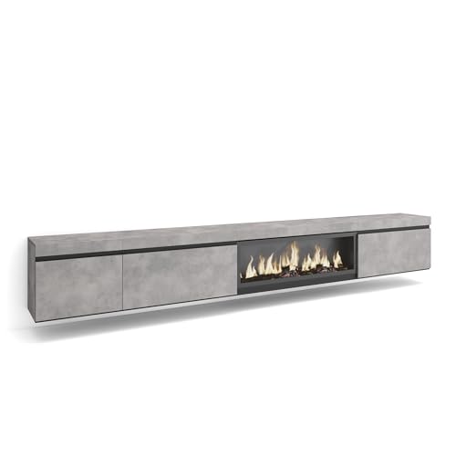 Skraut Home | Meuble TV | Banc Télé | Grand Espace de Rangement | 317x45x35 cm | Cheminée électrique XXL | Suspendu, Mural | Style Moderne | Ciment