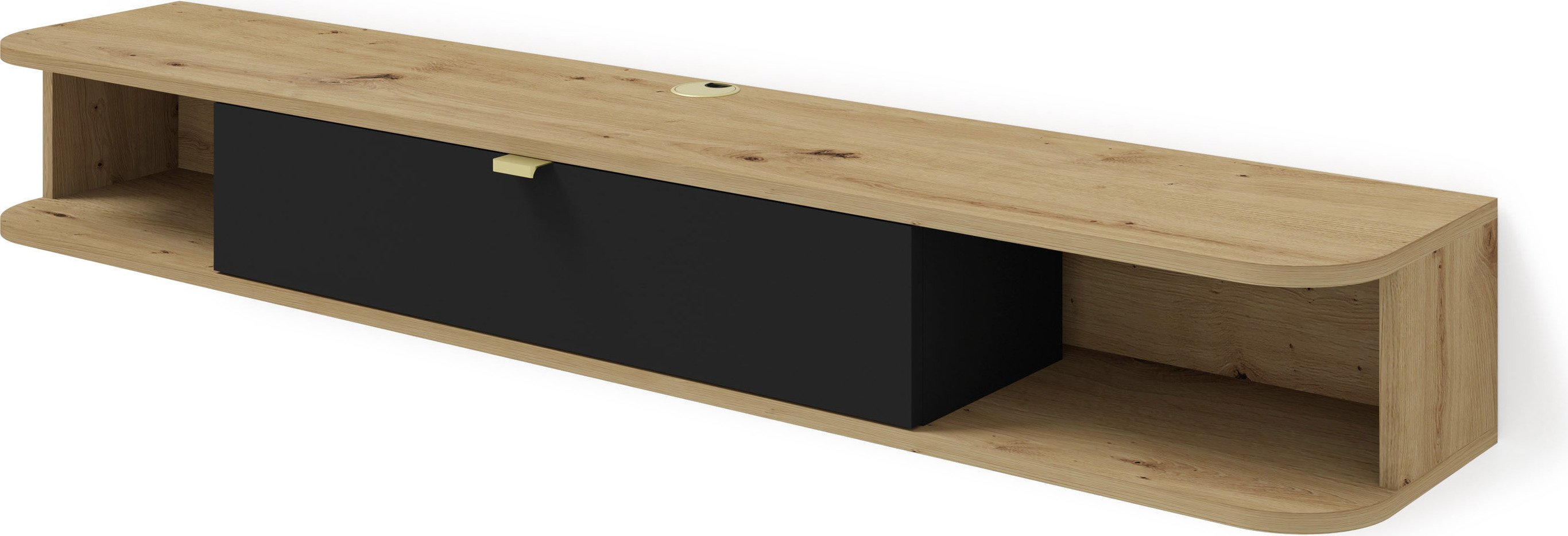 Meuble TV Icarus 156 cm ARTISAN CHÊNE / NOIR MAT - Meuble TV mural - Meuble suspendu - Buffet bas moderne pour le salon