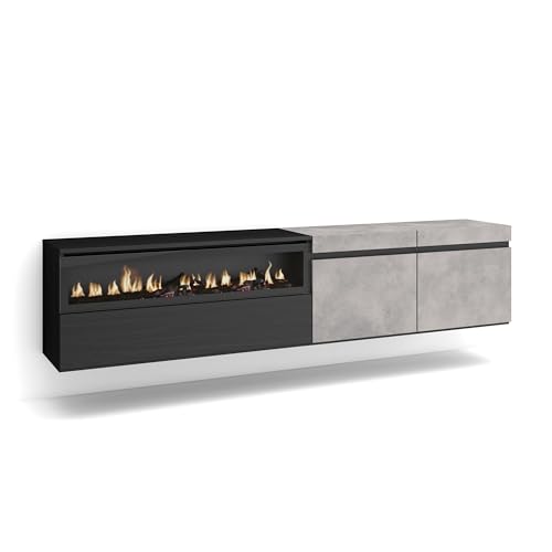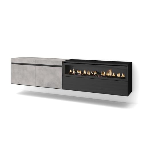 Skraut Home | Meuble TV | Banc Télé | Grand Espace de Rangement | 200x45x35cm | pour Les TV jusqu'à 80" | Cheminée électrique | Suspendu, Mural | Style Moderne | Ciment