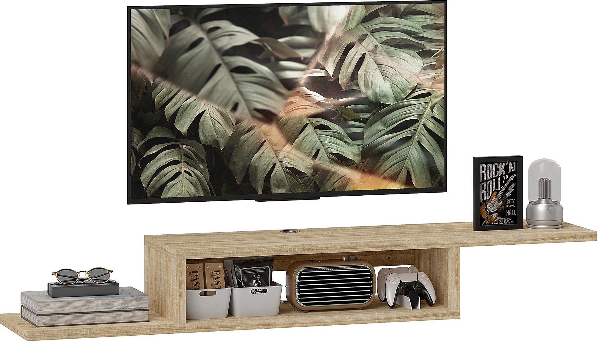 HOMCOM Meuble TV mural flottant suspendu support TV - étagère murale flottante - niche, passe-fils 152,4l x 29,8P x 21H cm chêne clair